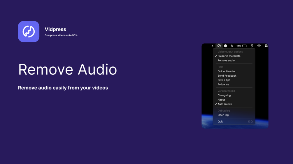 - Seamless Drag-and-Drop: Simply drag your videos onto the menubar icon, and let the app do the rest.
