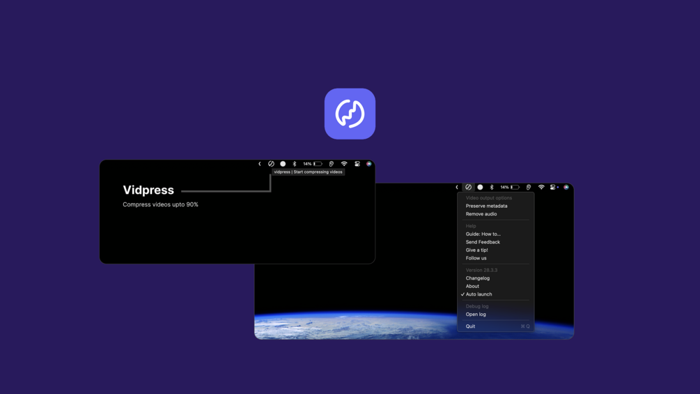 - Seamless Drag-and-Drop: Simply drag your videos onto the menubar icon, and let the app do the rest.